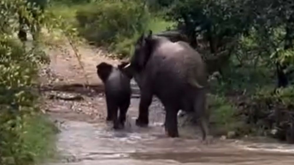 Слониха спасла своего детеныша во время наводнения в ЮАР