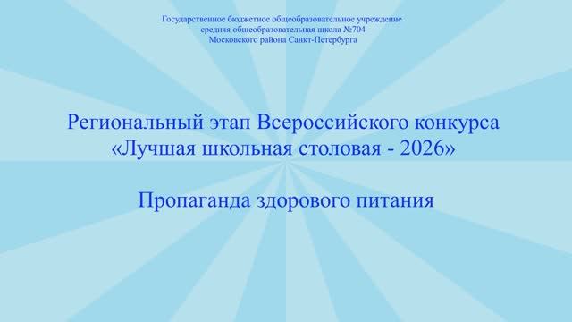 Государственное бюджетное общеобразовательное учреждение средняя общеобразовательная школа №704 Московского района Санкт-Петербурга Региональный этап Всероссийского конкурса "Лучшая школьная столовая - 2026" Пропаганда здорового питания.