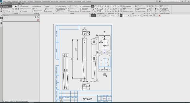 Заканчиваем проект по созданию модели табурета - отрисовываем чертёж ножки.