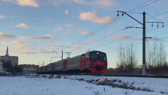 Электропоезд ЭД4М-0364, перегон Лахта - Новая Деревня, г. Санкт-Петербург (январь 2025г.)