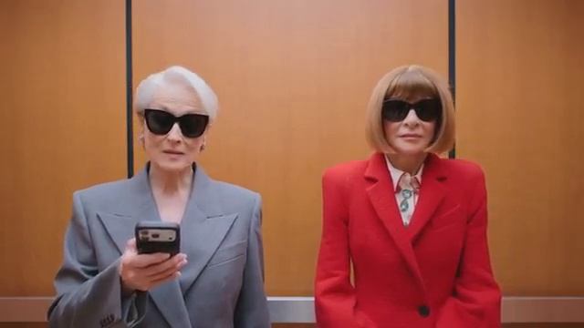 По сюжету видео, они встречаются в лифте и Винтур пытается вспомнить, где видела Стрип.