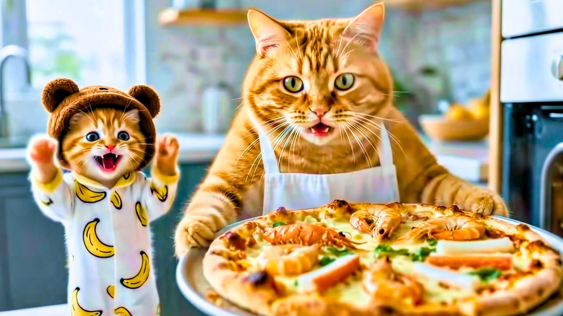 Мама кошка испекла Пиццу ❤️ Милые ИИ Мультики для Детей