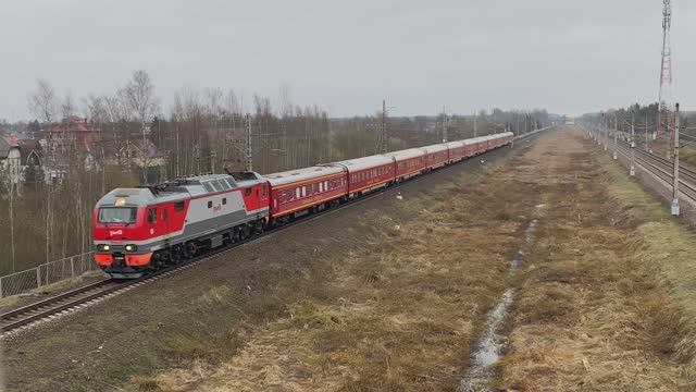 Электровоз ЭП2К-233 с поездом №2 "Красная Стрела", перегон Саблино - Колпино
