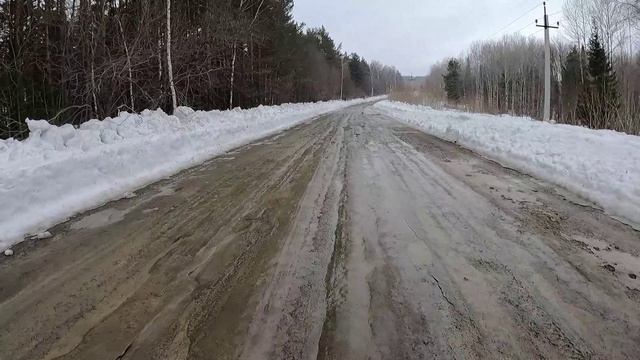 Сегодня было супер, +4 градуса, лёгкий порывистый ветер, тёплый, и если было бы солнце - разделся точно, а так пришлось только увеличить расстояние. Правда на старте желание особого бежать далеко не наблюдалось, так как снег обильно тает, и дорога практически открылась полностью, вот просохнуть не успела и двигаться пришлось по грязи, успокаивало одно что ноги были сухими. Добравшись до пятого километра, и начав движение к шестому, в метрах ста или чуть больше увидел животное, и первое что подумал, молодая росомаха, но чем ближе к ней подбирался, на протяжении полтора километра, понимал что это пёс на вольных хлебах, и ближе к седьмому километру, резко ушёл в глубь тайги, от дороги, ну а я продолжил свой путь к девятому километру, с прекрасным настроем. В итоге зафиксировать получилось только семнадцать километров, километр остался за кадром, в конце шестнадцатого километра попрощался и после этого почти километр ещё получилось снять.