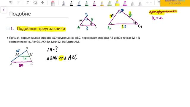 ЕГЭ математика БАЗА 2026. Задание 12. Подобие треугольников.