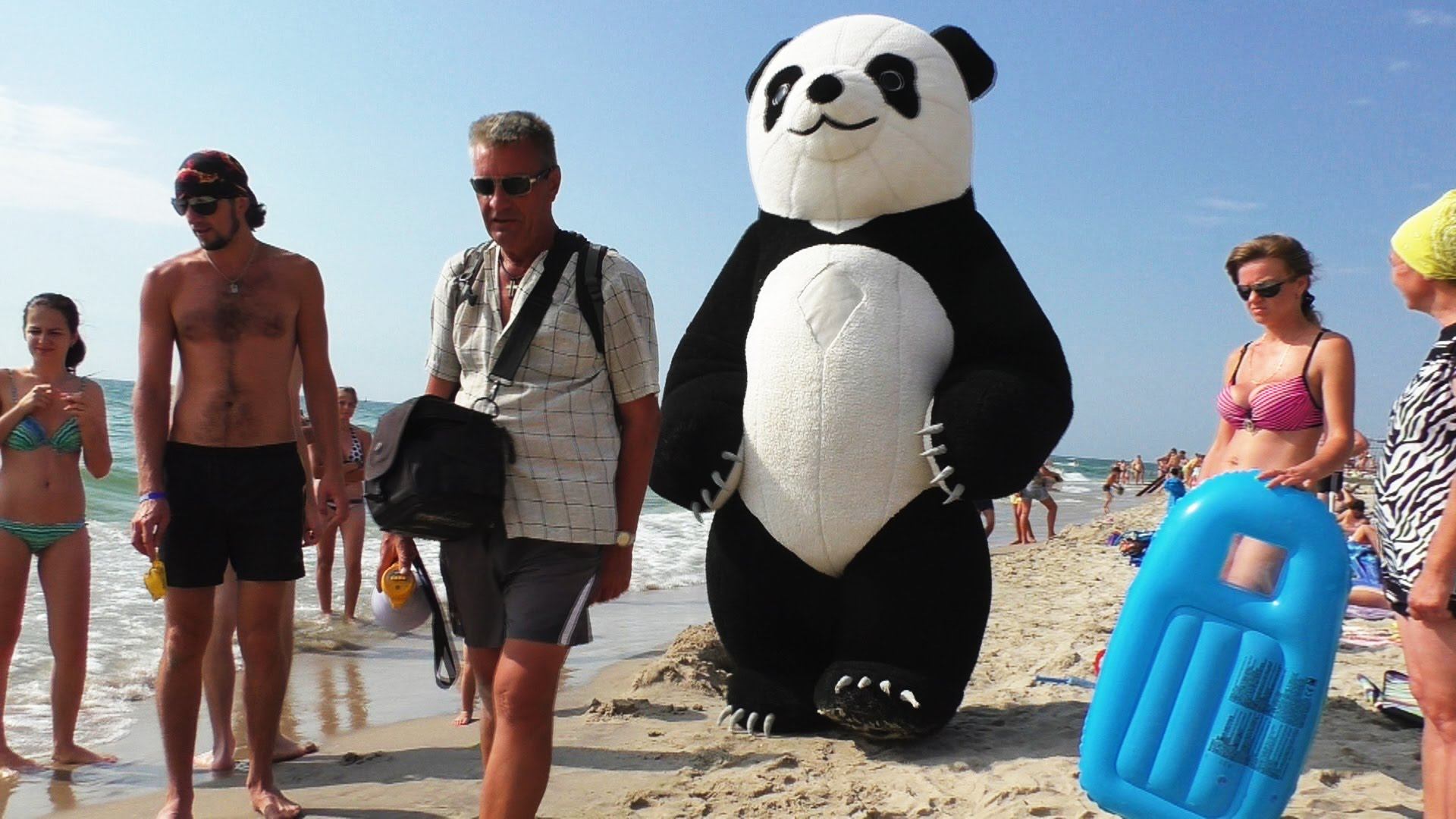 ★ Огромная ПАНДА кунг-фу гуляет на пляже. The big Baby Panda on the beach