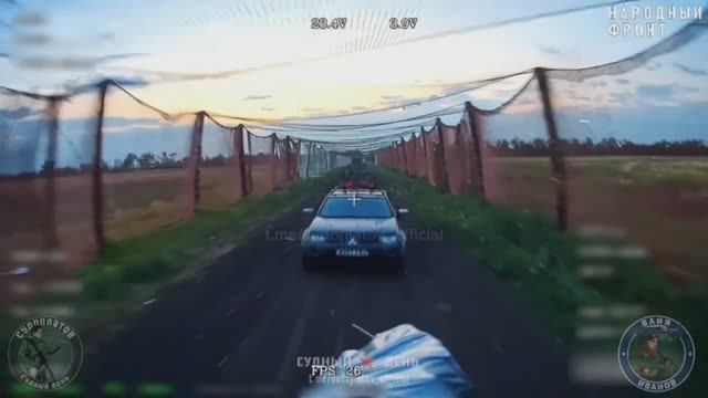 Удар по пикапу ВСУ в 'сеточном коридоре' на дороге от Муравки до Новопавловки в Днепропетровской обл