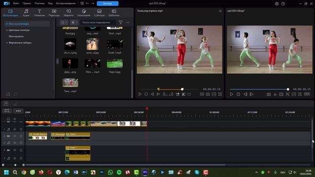 Основы Обрезка клипа в окне предварительного просмотра библиотеки Cyberlink PowerDirector 23