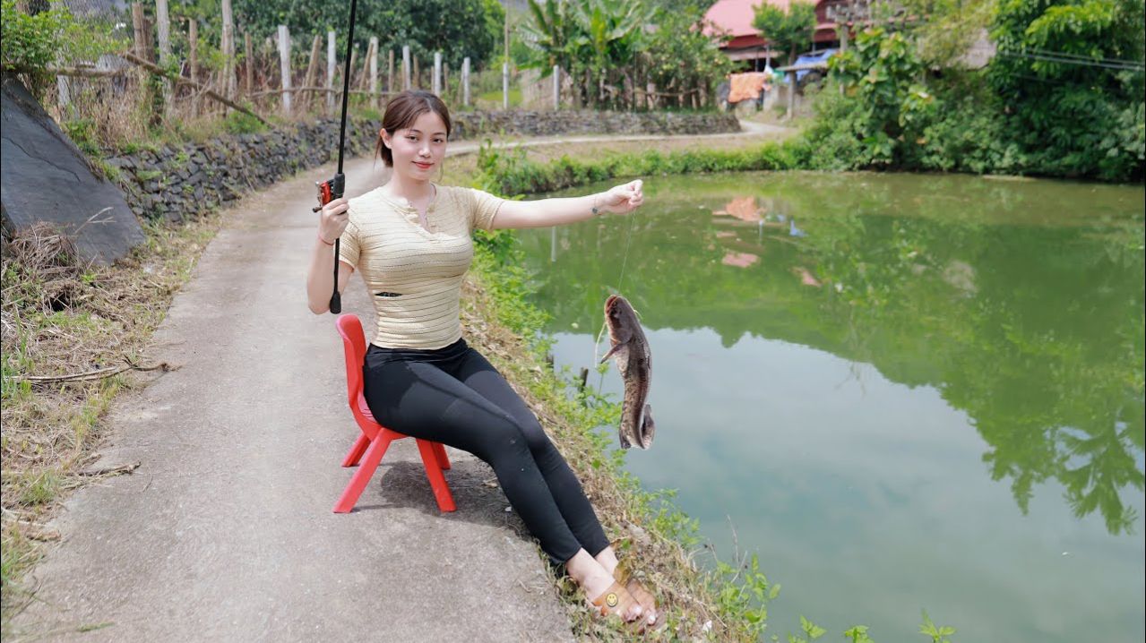 Всем хорошего настроения и позитивных эмоций. Красивая мать-одиночка готовит наживку для рыбалки, чтобы разнообразить меню для своих детей.