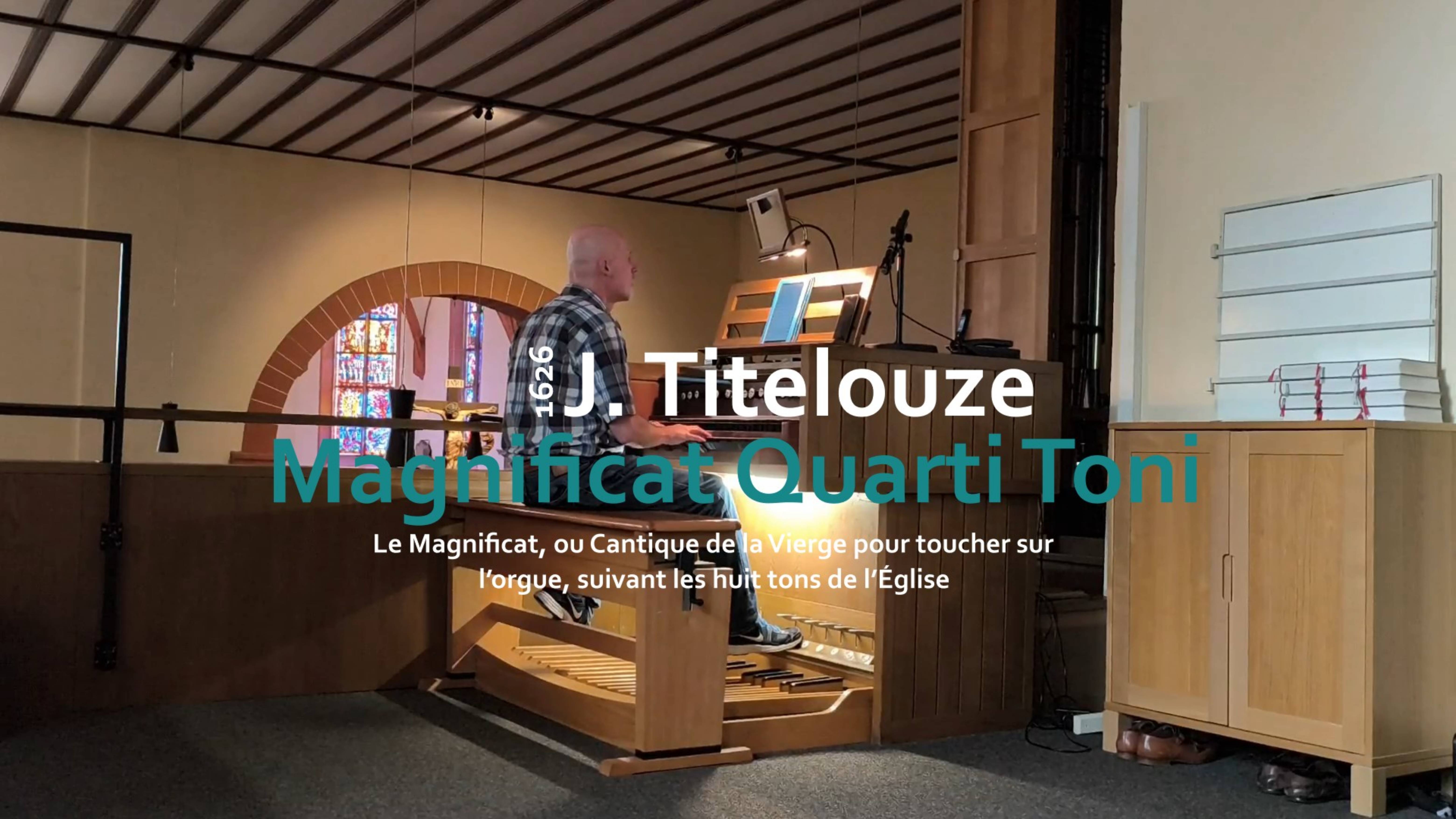 Jean Titelouze (1563-1633): Magnificat Quarti Toni, Le Magnificat, ou Cantique de la Vierge pour toucher sur l’orgue, suivant les huit tons de l’Église par J. Titelouze Chanoine, & Organiste de l’Église de Roüen (1626). Magnificat 00:10 Quia respexit 01:47 Et misericordia 03:36 Deposuit potentes 05:50 Deposuit potentes (Alter Ver.) 07:42 Suscepit Israel 09:22 Gloria Patri et Filio 11:00 Source Bibliothèque Sainte-Geneviève, VM 121 RES https://archive.org/details/VM121RES Репертуар: Малоизвестен; редко исполняется. Орган Vleugels (1980): Частично расстроен. Некоторые ноты имеют астматические нюансы.