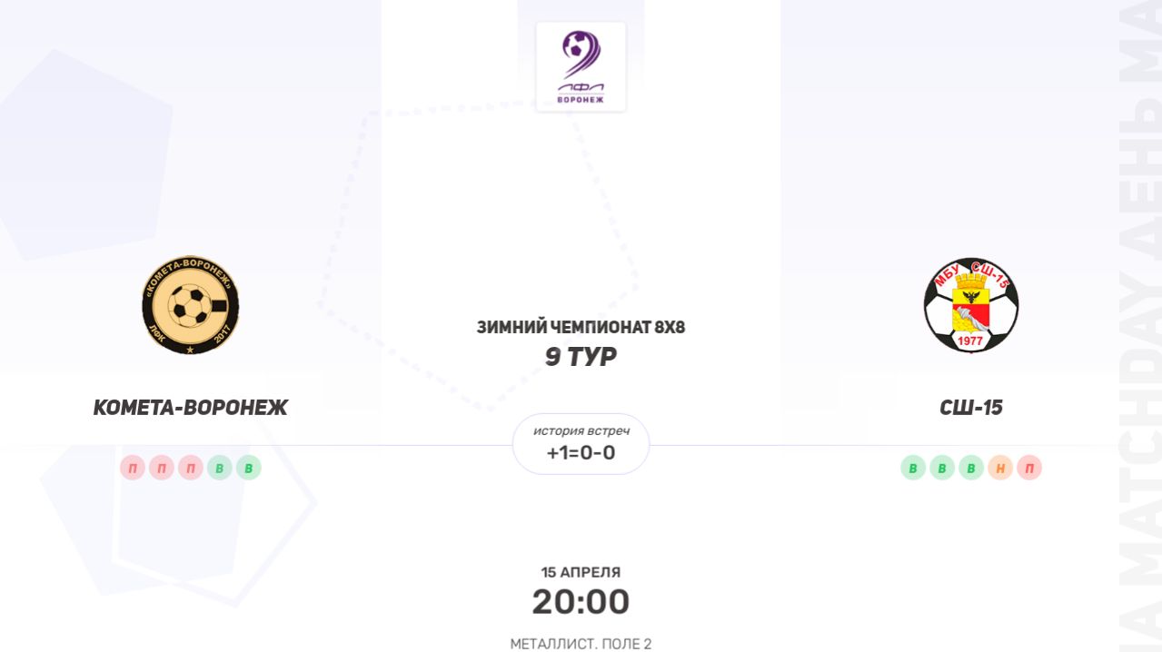 ОБЗОР МАТЧА Комета-Воронеж × СШ-15. Четвертая лига. Зимний чемпионат 8х8