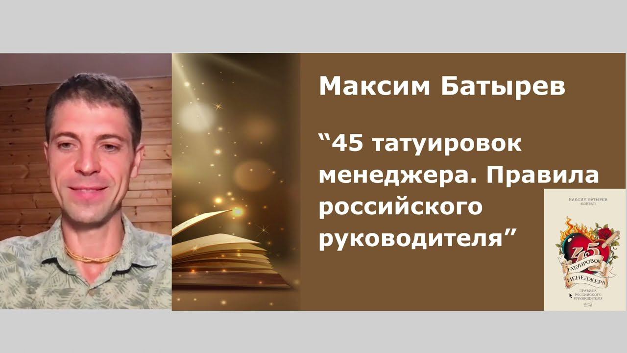 Аудио/для чтения: https://www.litres.ru/audiobook/maksim-batyrev/45-tatuirovok-menedzhera-pravila-rossiyskogo-rukovoditelya-9368164/?lfrom=538132577&ref_key=3af1a64f508ec71e2fdf49fb5760e4669ef818a978252b394ce3917fb0dabf5c&ref_offer=1