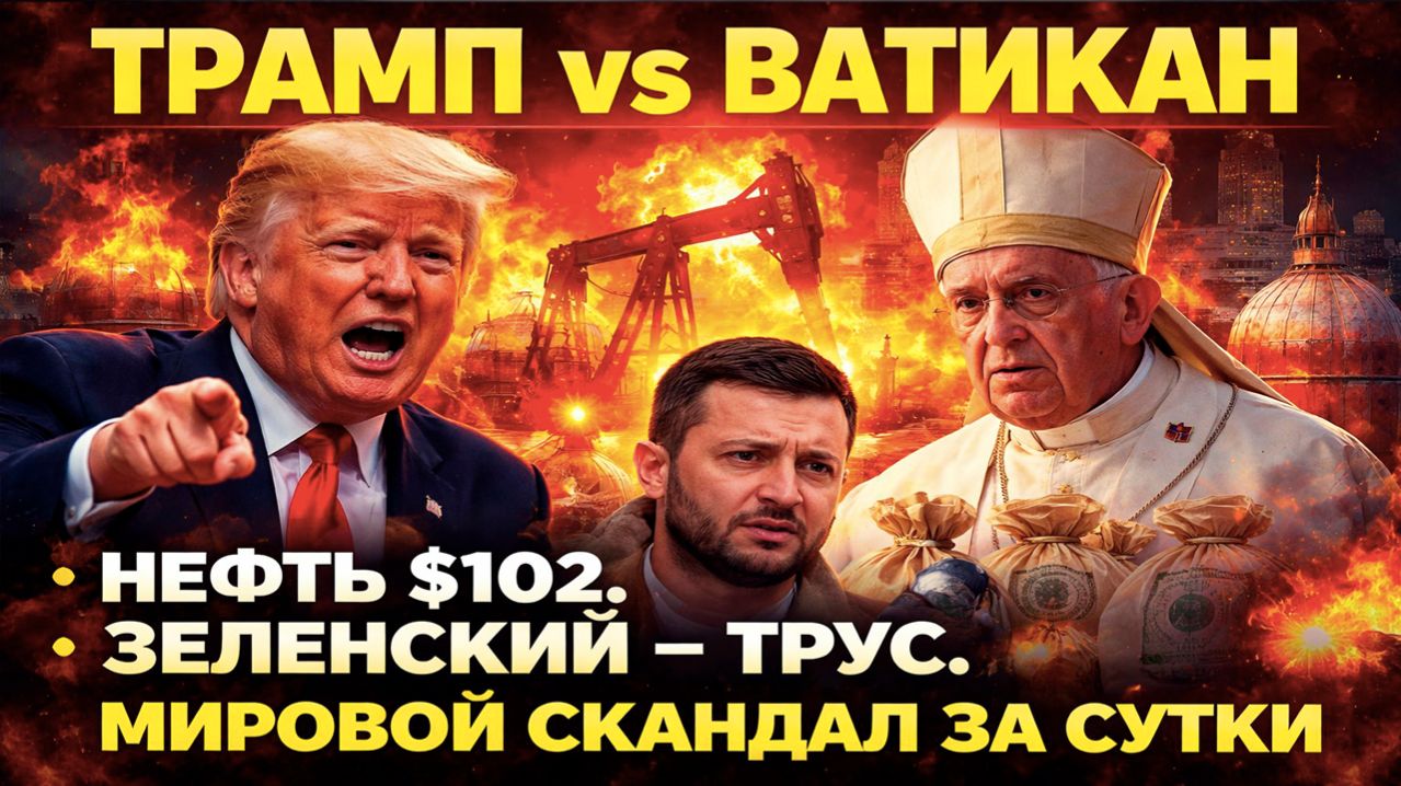 13 апреля 2026 года войдёт в историю как день, когда президент США поссорился с Ватиканом. Дональд Трамп в своей соцсети Truth Social обрушился на папу Льва XIV с беспрецедентной критикой: «Я не хочу Папу, который считает нормальным ядерный Иран и осуждает Америку». Тем временем цены на нефть взлетели выше $100 на фоне объявленной блокады Ормузского пролива. Вице-президент Вэнс признал: договориться с Тегераном пока невозможно. Куба готовится к обороне. А британский политолог Ричард Саква вынес уничтожительный вердикт Зеленскому. Смотрим и разбираем главные мировые новости.