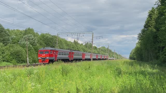 Электропоезд ЭТ2М-092, перегон Пупышево - Новый Быт, Ленинградская область (июнь 2024г.)