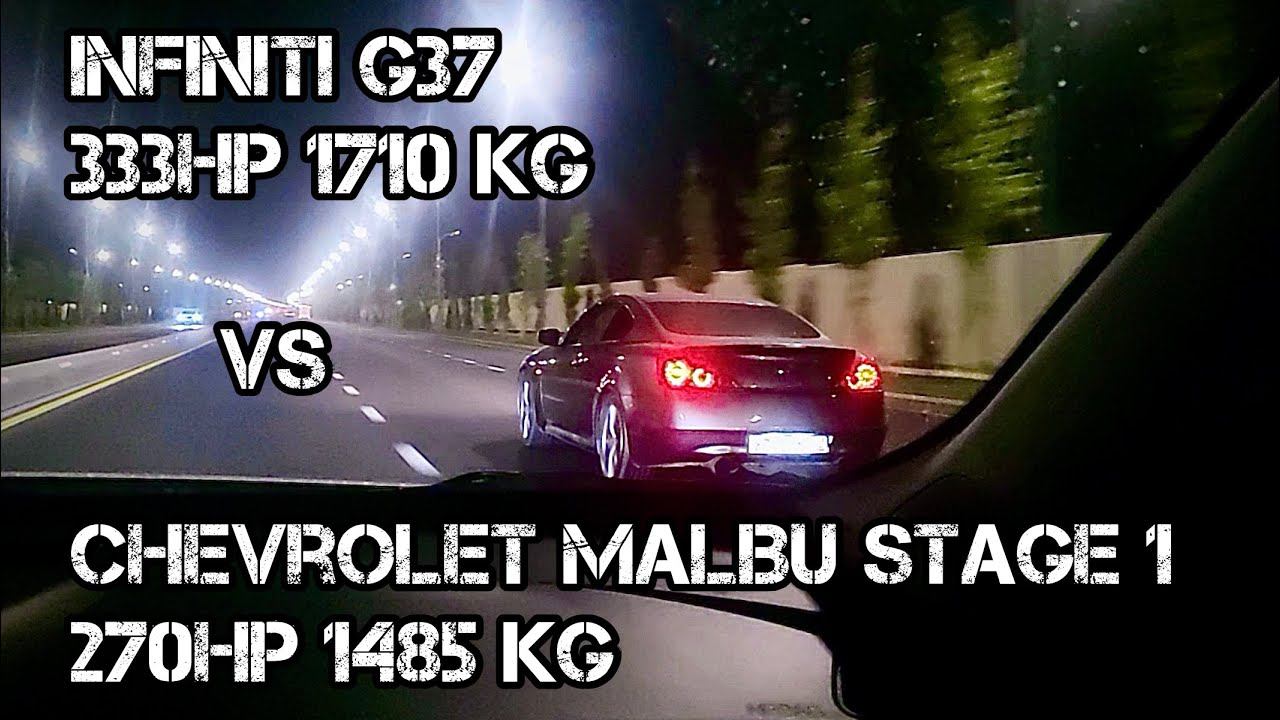 #Infiniti #G37 333hp 1710 kg VS #Chevrolet #Malibu #Stage 1 270hp 1485 kg #ташкент #жара По всем интересующим вопросам, пишите в комментарии или в соц.сети, ссылки ниже. YouTube 2: https://www.youtube.com/khavrenkoartem RuTube: https://rutube.ru/channel/23872235/ Яндекс Дзен: https://zen.yandex.ru/artemkhavrenko Instagram: https://www.instagram.com/khavrenko_a/ Facebook: https://www.facebook.com/artem.khavrenko DRIVE2: https://www.drive2.ru/users/khavrenko/ VK: https://vk.com/ld13737777