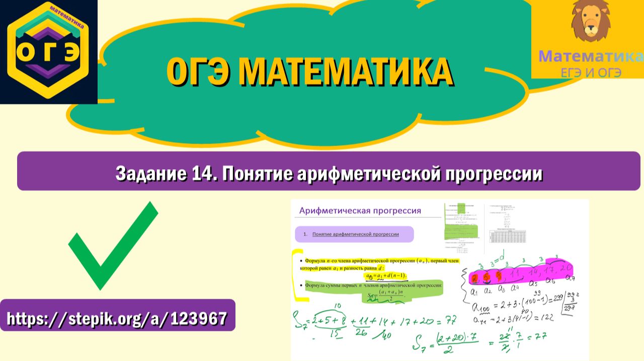 Продолжение на степике: https://stepik.org/a/123967. Вся теория и разбор задач, которые точно встретятся на ОГЭ по математике! ТГ-канал: t.me/ege_oge_maths. В видео разбираем Задание 14, знакомимся с понятием арифметической прогрессии, разбираем основные формулы из справочных материалов и учимся ими пользоваться.