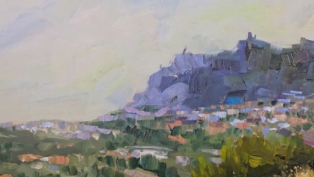 30x40 cm, oil paint on canvas The painting "San Marino" is made in oil on canvas measuring 40x30 cm. This picturesque landscape was painted from life during the artist Anna Shesterikova's trip to Italy and depicts picturesque hills covered with yellowing summer grass. The light green and golden shades of which create the effect of space and infinity, filling the picture with an atmosphere of silence and solitude. In the middle ground we see a valley built up with houses of residents. And in the background a large mountain rises majestically. Its blue, almost purple shades contrast with the warm palette of the foreground, creating a sense of depth and distance. The mountain, on which the dwarf state of San Marino is located, looks majestic and a little mystical, as a symbol of stability and antiquity. The painting conveys a lively perception of nature in real time, with a focus on the soft transitions of light and color characteristic of the landscape on a hot day. The painting reflects the simplicity, grandeur and endless beauty of nature, where each element is combined into a single, harmonious whole. This art canvas is made of the highest quality materials, which makes it a long-lasting investment. It is equipped with hooks and a cord for hanging on the wall, the sides are painted with a contrasting dark paint, creating a framing effect. If desired, the artist can help in framing the painting in a beautiful frame that matches the collector's interior. The painting is ideal for decorating a small wall in a classic or modern interior. You can buy my paintings on https://www.1stdibs.com/search/art/?q=shesterikova https://www.saatchiart.com/en-ch/all?query=shesterikova https://www.singulart.com/en/artist/anna-shesterikova-19385 Instagram https://www.instagram.com/anna_shesterikova_art/ Facebook https://www.facebook.com/profile.php?id=1554265169 Website https://www.anna-art.ru Music: Sailing - Telecasted