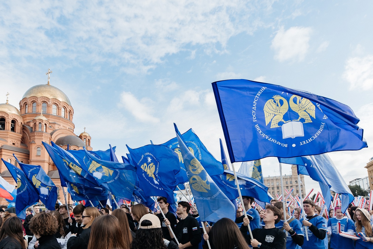 В Волгограде прошел парад студенчества. В нем приняли участие более 8000 волгоградских первокурсников, в том числе и студенты Волгоградского государственного социально-педагогического университета.