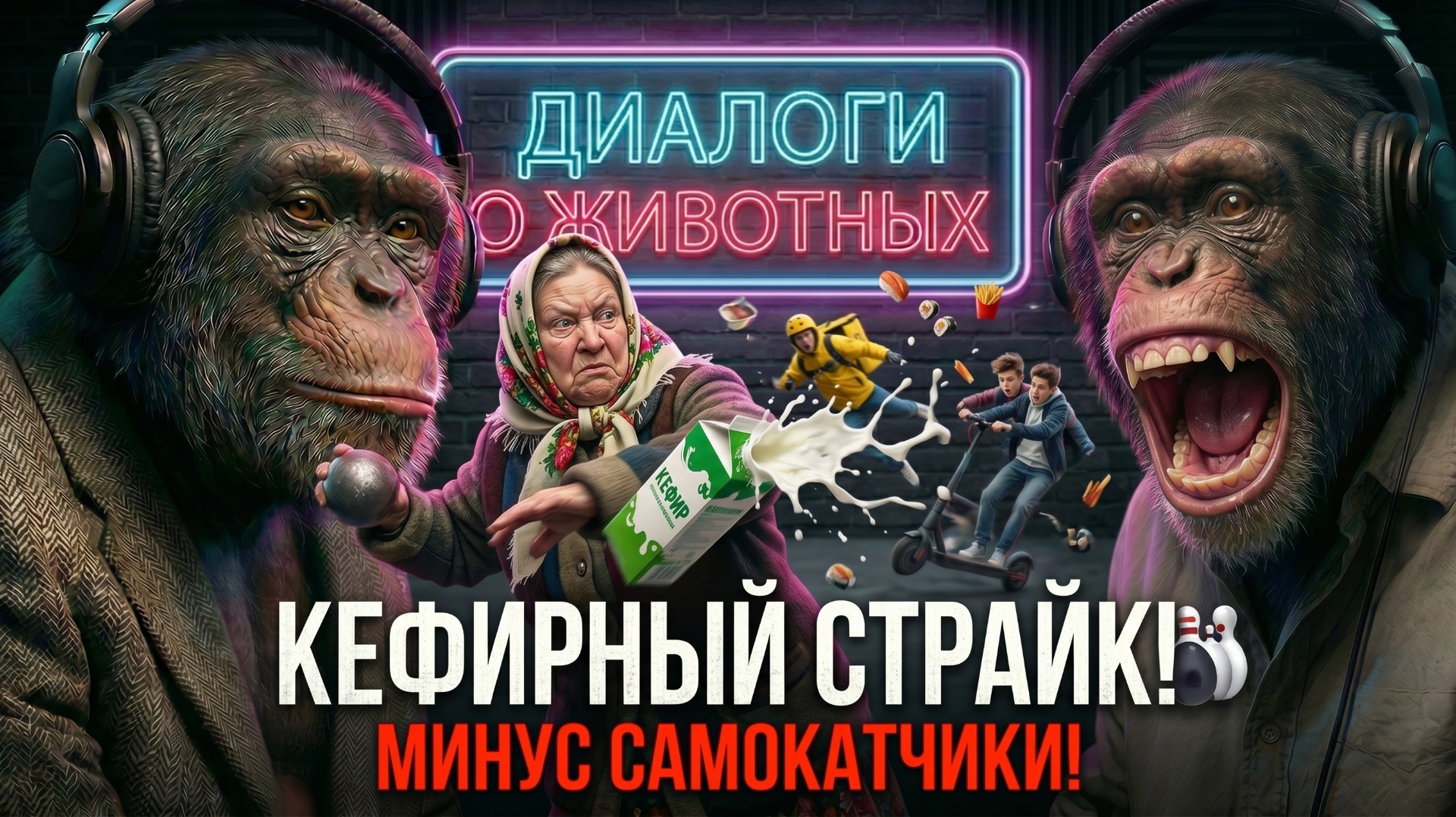 Диалоги о животных. Выпуск 19. Кефирный страйк. Добро пожаловать в «Каменные джунгли»! 🍌 Подкаст, где мы обсуждаем, как комфорт окончательно лишил человечество инстинкта самосохранения. Сегодня у нас история, которая заставит старика Дарвина аплодировать стоя! Тротуары захватили они: бесшумные желтые ниндзя с терморюкзаками и «сиамские хрустики» — зумеры на прокатных электросамокатах. Ходить пешком стало опаснее, чем гулять по саванне. Но на каждую хитрую гайку найдется свой болт с левой резьбой. Знакомьтесь: Баба Вера. Женщина, которая в 90-е разнимала горилл мокрой шваброй, а в 70-х отбивала полевую кухню на БАМе от стаи волков. Что будет, если желтый курьер на мопеде решит пронестись мимо нее на скорости 40 км/ч, пока она несет домой литр кефира? Спойлер: Будет КЕФИРНЫЙ СТРАЙК! 🎳🥛 Вы узнаете: 💥 Как сделать «кефирный хэдшот» и отправить курьера в нокаут. 🛴 Как желтая торпеда протаранила «экипаж Титаника» на самокате. 👮♂️ Что сказал участковый Иваныч про «пропаганду нетрадиционной езды на одном бревне». 💪 И почему батальон Баб Вер — наше единственное спасение от колесного апокалипсиса! 👇 Пишите в комментариях: А вас бесят самокатчики и курьеры на тротуарах? И возникало ли у вас желание кинуть в них пакет кефира? Признавайтесь! Если вы за безопасные тротуары — жмите лайк, подписывайтесь на канал и ОБЯЗАТЕЛЬНО перешлите это видео друзьям, пусть тоже кайфанут от правосудия Бабы Веры! 🔥🍌 Таймкоды: 0:14 — Сбой пищевой цепи: Кто захватил наши тротуары? 0:30— Баба Вера идет с рынка: Расчет спичек и пенсии 0:45 — Желтопузый ниндзя: Курьер летит в слепую! 1:30 — Кефирный хэдшот: Баба Вера включает мышечную память 2:08 — Летящая торпеда и «Сиамские хрустики» на самокате 2:44 — СТРАЙК! Роллы, грязь и лужа 3:04 — В кабинете участкового: Слезы курьера за рейтинг 4:00 — База от Иваныча: Езда на одном бревне 4:26 — Эпичная речь Бабы Веры про БАМ и рельсу 4:47 — ФИНАЛ: Раздайте пенсионеркам кефир! #самокатчики #курьеры #юмор #подкаст #каменныеджунгли #бабавера #электросамокат #жиза #смешноевидео #карма Телега - @AiKinoArt RuTube: https://rutube.ru/channel/74841783/ VK Видео: https://vkvideo.ru/@club235371581