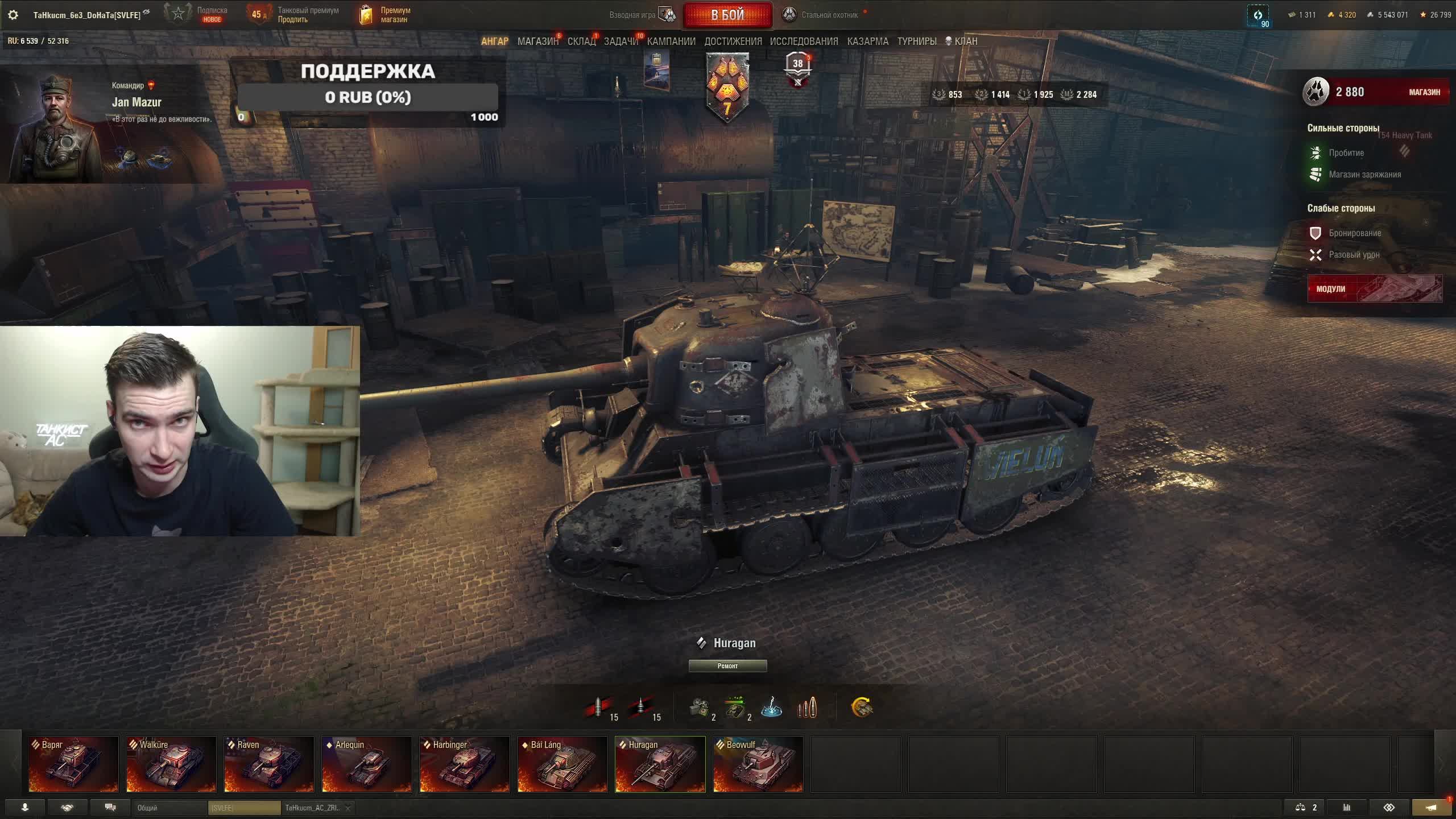 Поддержать стримера http://www.donationalerts.ru/r/tahkucm_ac Сбер без комиссии 2202 2062 2408 9735 напишите в чате, чтобы проверил Telegram https://t.me/TaHkucm_AC Канал VK Play Live https://vkplay.live/tahkucm Канал Бусти https://boosty.to/tahkucm Канал на трово https://trovo.live/TaHkucm_AC Канал Яндекс Дзен https://dzen.ru/id/62355e95d406852937d33526 Группа Вконтакте https://vk.com/tahkucm_ac Оборудование и модернизации на все танки https://docs.google.com/spreadsheets/d/16koQOrtKQKQrAy2Pgfm6GBeG8bA1tJP_7Vm78knwUXA/edit#gid=422106233 Настройки игры в скринах https://dzen.ru/a/YmFvHhJ9yi3rZO5M Моды со скринами установки https://vk.com/topic-136212047_47639792 По поводу рекламы писать в личку https://vk.com/v_xarlamow Всем привет! Меня зовут Виктор, мой ник TaHkucm_AC. На моем канале стрим мира танков каждый день с 8 или 9 по мск. Так же иногда стримлю вечером в произвольное время, чтобы не пропустить подпишитесь на оповещения в телеге или вк (ссылки выше). Играю в танки с декабря 2011 года, а стримить начал в начале 2017 года. Во время стримов общаюсь с чатом, помогаю советами по игре, объясняю тактику. Средняя статистика 65% побед и 4-5к вн8. Фан кланы SLPFR - Командиры marmyn и artlay - из требований только то, чтобы вы часто играли в танки. Укреп 10 уровня. Участвуют в ивентах на ГК, как минимум чтобы собрать пропуск на аукцион. L-DS - Командир DarkSpawn13. Укреп 10 уровня, плюхи по кд SVLFE - Командир Shadowlions. Требуется Team Speak (программа связи) для взводов и клановых покатушек. Участвуют в ивентах на ГК, как минимум чтобы собрать пропуск на аукцион. укреп 10 уровня