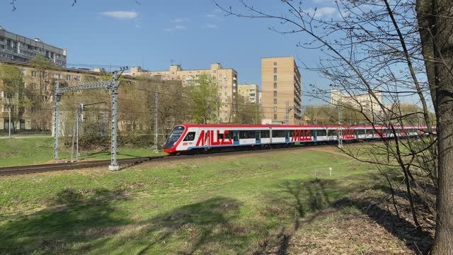 Электропоезд ЭГ2Тв-037 "Иволга", перегон Подмосковная - Тушино, г. Москва (апрель 2023г.)