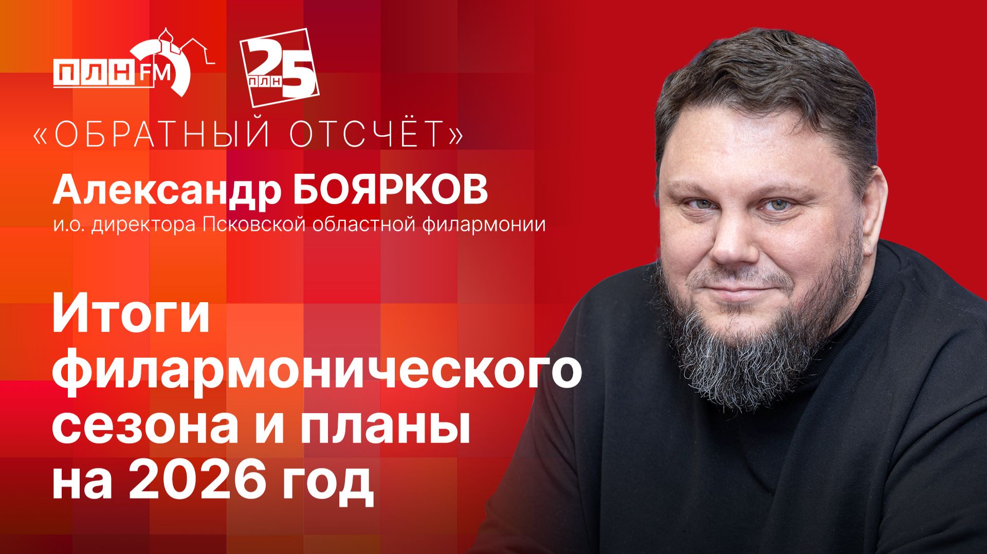Гость: Александр БОЯРКОВ, и.о. директора Псковской областной филармонии Ведущий: Артем ТАТАРЕНКО Видео ПЛН-ТВ