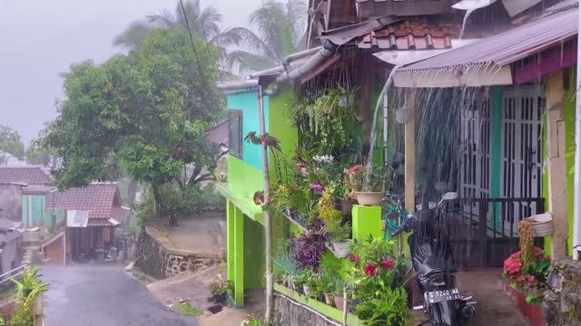 СИЛЬНЫЙ ДОЖДЬ В ГОРНОЙ ИНДОНЕЗИЙСКОЙ ДЕРЕВНЕ. СИЛЬНЫЙ ДОЖДЬ И ЗВУКИ ГРОМ ДЛЯ СНА.