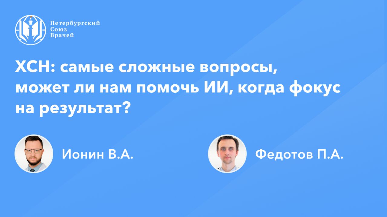 Видеозапись онлайн-семинара: «ХСН: самые сложные вопросы, может ли нам помочь ИИ, когда фокус на результат?» Дата проведения: 01.04.2026 Страница мероприятия: https://spb.doctor/i/260401/ Программа: 1. Предстадия СН: что делать интернисту? Ионин Валерий Александрович 2. Терминальная ХСН: окно возможностей в диагностике и лечении Федотов Петр Алексеевич 3. Ответы на вопросы О семинаре: Лечение хронической сердечной недостаточности (ХСН) - это междисциплинарный вызов, где результат зависит от точности диагностики, медикаментозной и хирургической тактики и персонализированного мониторинга. В онлайн-семинаре будут обсуждаться «серые зоны», в которых стандартные протоколы требуют экспертных уточнений и реальные возможности искусственного интеллекта.