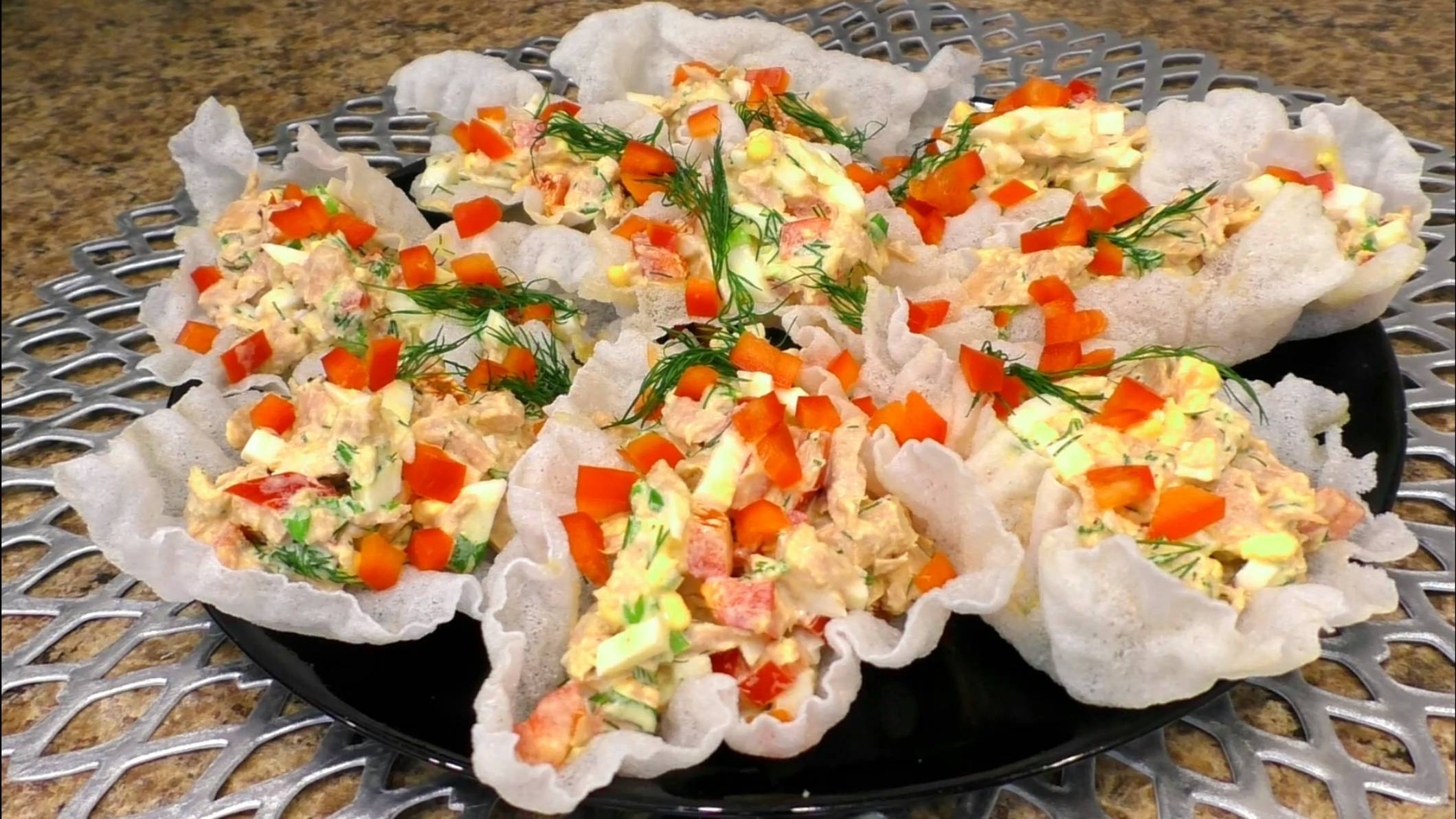 Праздничная закуска с тунцом. Ингредиенты: Тунец консервированный - 180 г, Яйцо варёное - 2 шт, Сладкий перец красный - 50 г, Зелёный лук - 1 стебель, Укроп - 10 г, Майонез - 2 ст. л., Соль, перец - по вкусу, Рисовая бумага - 2-3 листа, Растительное масло для жарки. Приятного аппетита! #закускаизтунца #тунецрецепт #тунецконсервированный #закуски #закускикпиву #быстрыезакуски #закускинастол #рецептызакусок #простыезакуски #вкусныезакуски #холодныезакуски #простыеивкусныезакуски #приготовлениезакусок #рисоваябумагарецепт #чипсыизрисовойбумаги #закускинаскоруюруку #рецептывкусныхзакусок #легкиезакуски #закускибезварки #ВалентинаСидорова