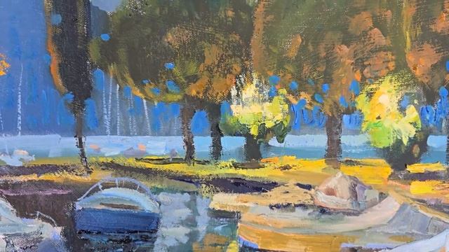 60x70, oil paint on canvas This landscape painting was painted based on memories of a trip to the Italian town of Portese. I was inspired by the amazing evening lighting of the first lit lanterns on the embankment, the pink light of the setting sun on the boats rocking at the piers, the amazing play of multi-colored highlights on the dark water. Try to mentally walk through the painting, exploring every corner of the canvas. You will feel incredible calm and relaxation from contemplating evening Italy, it will seem to you for a minute that, leaving a luxurious restaurant, you are contemplating Divine beauty! My painting was created for someone who has visited Italy and would like to preserve memories for many years. The painting is painted with oil paints on canvas in the style of modern impressionism and is ready to hang on the wall. It is equipped with hooks, the sides are painted with dark paint. If desired, I will help frame it in a beautiful frame suitable for your interior. You can buy my paintings on https://www.1stdibs.com/search/art/?q=shesterikova https://www.saatchiart.com/en-ch/all?query=shesterikova https://www.singulart.com/en/artist/anna-shesterikova-19385 Instagram https://www.instagram.com/anna_shesterikova_art/ Facebook https://www.facebook.com/profile.php?id=1554265169 Website https://www.anna-art.ru Music: Longer Distance - TrackTribe