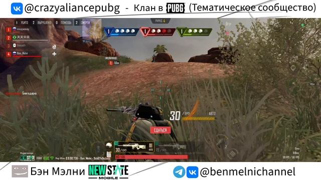 Люблю показывать свою некрасивую игру в игру! Бонусная версия с большими проблемами игры из-за кривого обновления, но благо в самом конце, когда и так всё понятно. Лично мне было интересно сыграть этот насыщенный во всех смыслах матч. Как говорится, всем спасибо за игру! Код для возвращения в игру - VNU0VFJ Ниже список официальных ссылок: Подписывайтесь, чтобы ничего не пропустить: Вконтакте: https://vk.com/newstatemobile TikTok: https://www.tiktok.com/@newstatemobile_ru Telegram: https://t.me/new_state_mobile_cis Основной официальный канал New State Mobile - @NEWSTATEMOBILE https://youtube.com/@NEWSTATEMOBILE?si=OHFSw4QyxNq6D0oY Русский официальный канал New State Mobile - @NEWSTATEMOBILERUSSIA https://youtube.com/@NEWSTATEMOBILERUSSIA?si=fk4iV3QDAlPCGXuB Чтобы быть в курсе всех событий можно подписаться на мою группу в Вконтакте - https://vk.com/benmelnichannel Также при желании можете вступить в дискорд сервер, чтобы получать все уведомления о новых видео - https://discord.com/invite/SVgTqxKYcj Telegram - https://t.me/benmelnichannel ЗаБустим по полной (когда-нибудь точно) - https://boosty.to/benmelni Ссылка на "Музыкальное облачко" - https://soundcloud.com/benmelni Я в Дзене - https://dzen.ru/benmelni Я в Рутубе - https://rutube.ru/channel/23836475/ Тематические сообщества (кланы в играх и не только): Crazy Aliance PUBG (PUBGM, New State) - https://vk.com/crazyaliancepubg Crazy Aliance - клан в Crossout - https://vk.com/crzaliance Игровое сообщество Бэна Мэлни - https://vk.com/benmelnigameworld #newstatemobile #newstatearena #ньюстейтмобайл