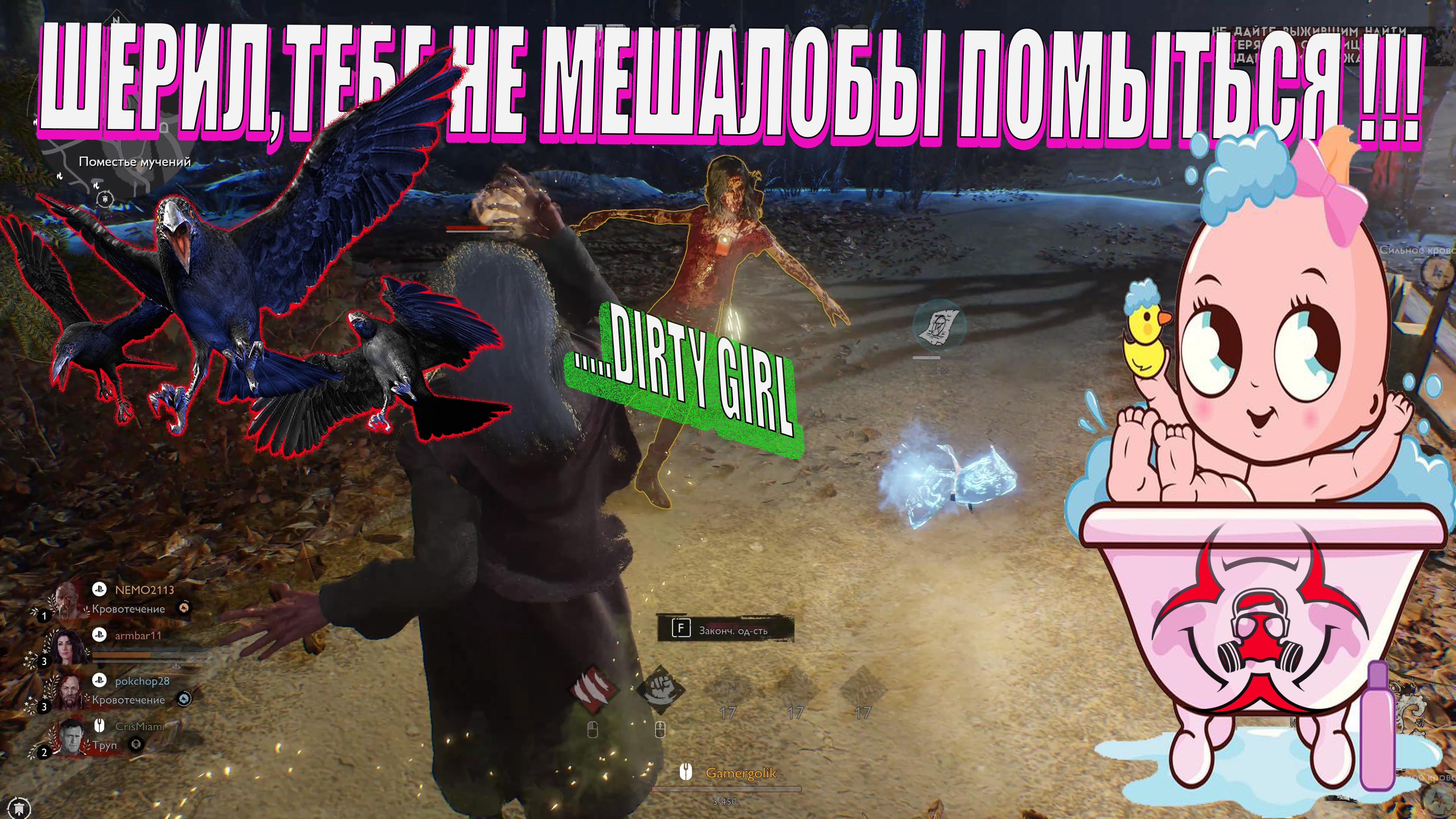 Evil Dead The Game. Грязные как хрюши. Все забрызгано в крови.
