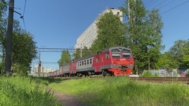 Электропоезд ЭД4М-0371, станция Новая Деревня, г. Санкт-Петербург (июнь 2021г.)