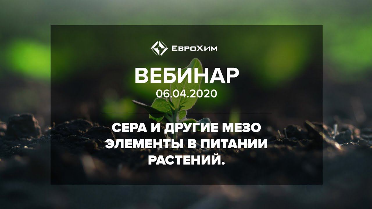 Сера - второй после азота элемент, участвующий в построении растительных белков. Однако многие забывают о его важности в питании растений, особенно это касается бобовых, крестоцветных и масличных культур (рапс, подсолнечник, кукуруза, горчица)! Между тем СЕРА - Увеличивает надземную массу растений и длину корней Обеспечивает увеличение содержания белка и масла в сельскохозяйственных культурах Повышает устойчивость к заболеваниям, низким температурам и засухе А вы знали, ЧТО каждая культура имеет собственное соотношение азота и серы в сухом веществе❓ и если в почве слишком много азота по отношению к сере, то развитие растения приостанавливается, накапливаются нитраты, возростает риск азотных потерь❓ сера потребляется корнями в виде сульфат-иона SO4(2-), однако может усваиваться и листовой поверхностью в виде оксида серы SO2❓ Подробно о сере и других мезо-элементах в питании растений, о том, как обеспечить свои культуры полноценным минеральным питанием с помощью правильно подобранных удобрений узнаете из вебинара!