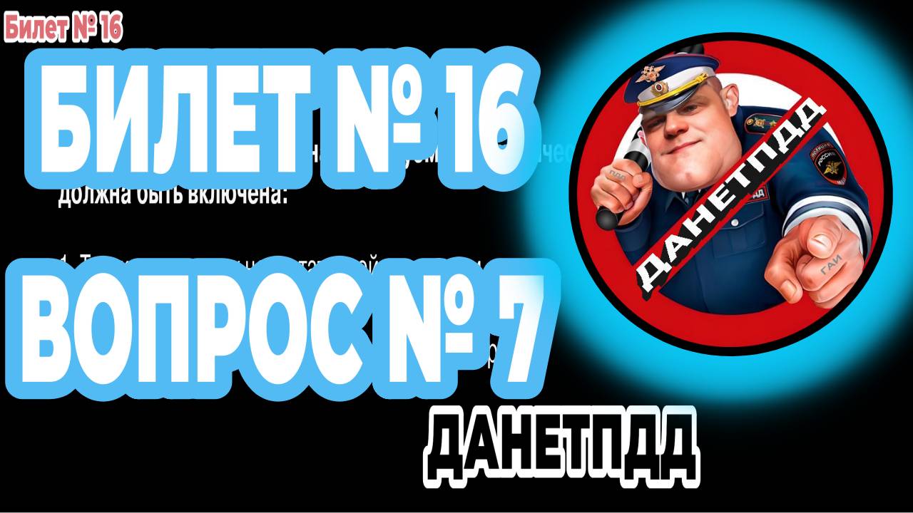 Билет № 16. Вопрос № 7. Аварийная сигнализация на буксируемом механическом транспортном средстве должна быть включена: Решаем вопрос № 7 ПДД онлайн экзаменационного билета ГАИ № 16. ___________________________________________ 🔥 Вы можете поддержать канал по ссылке: https://clck.ru/3FeMWH ___________________________________________ ✅ ДАНЕТПДД в социальных сетях: YouTube: https://youtube.com/@danetpdd Rutube: https://rutube.ru/channel/51400104/ VK Видео: https://vkvideo.ru/@danetpdd ВКонтакте: https://vk.com/danetpdd Телеграм: https://t.me/danetpdd