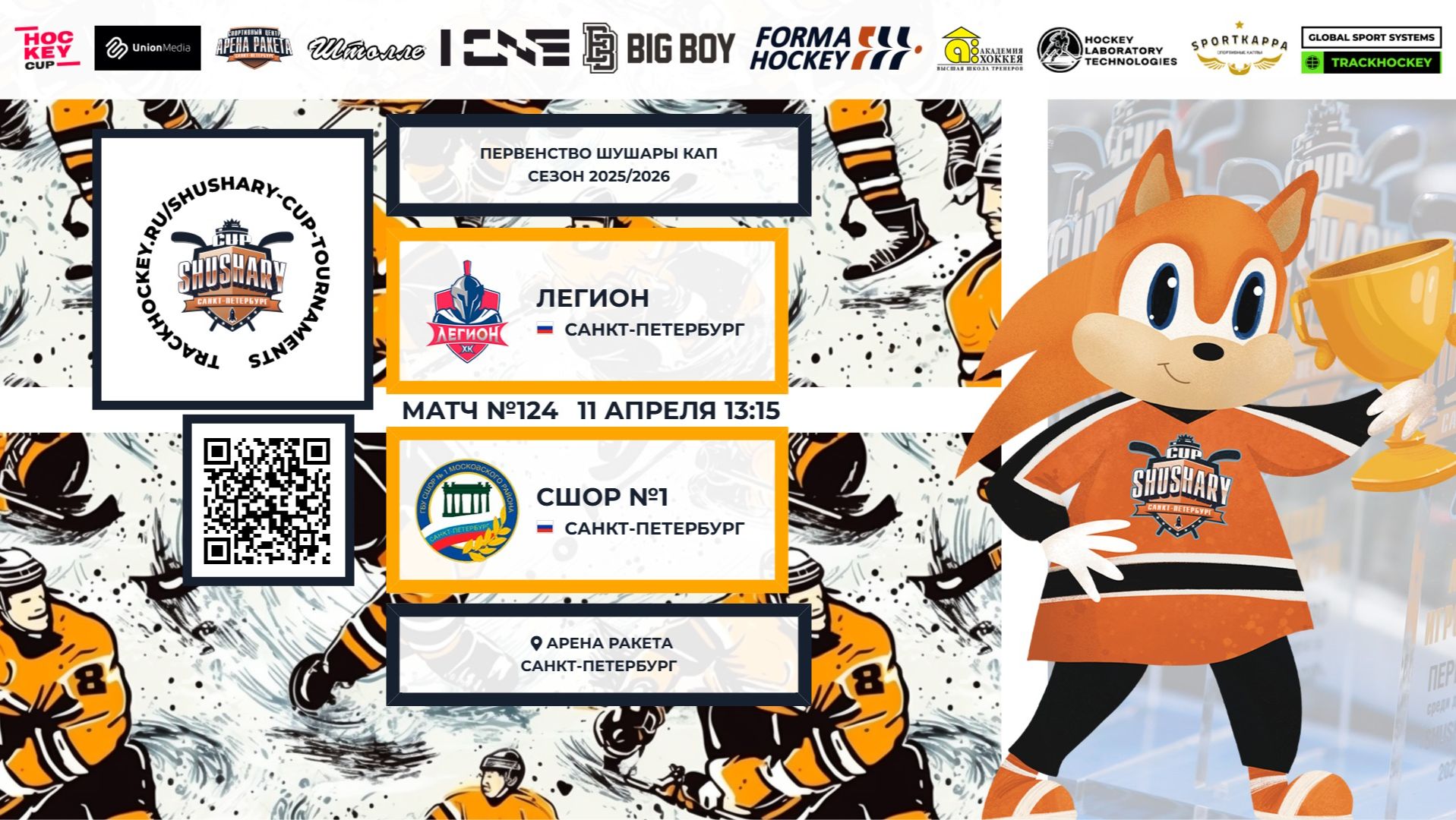 Матч №124 • Легион — СШОР №1 • Shushary Cup 2018-U8 • Арена Ракета • 11 апреля 2026 в 13:15