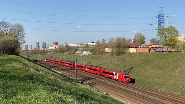 Электропоезд ЭД4МКМ-АЭРО-0004 "Аэроэкспресс", перегон Коломенское - Москва-Товарная-Павелецкая, г. Москва (апрель 2025г.)