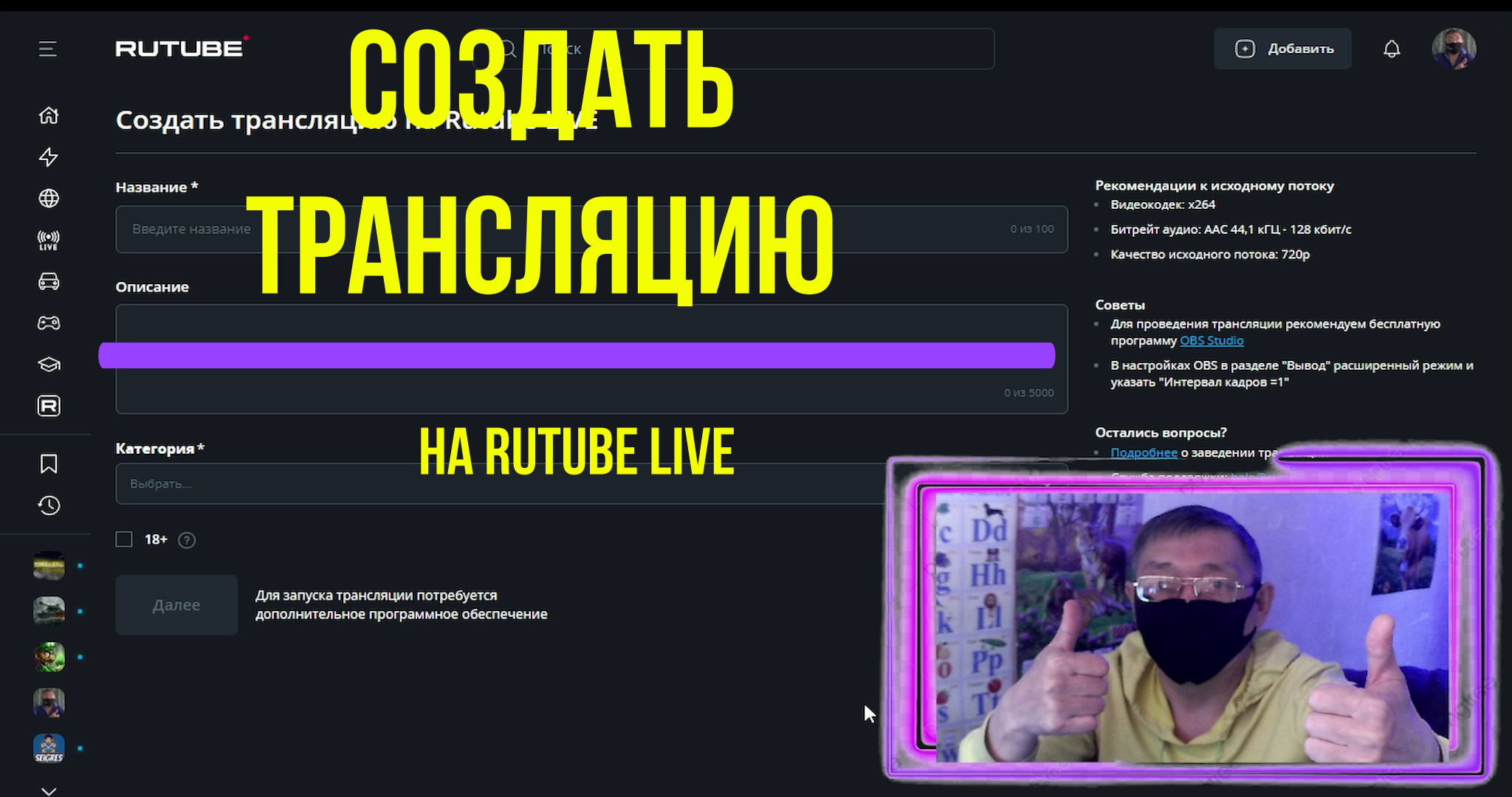 Как создать трансляцию на Rutube LIVE